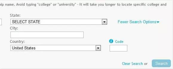 接下来一个页面是选择你要送分的学校,可以直接添加学校或点击More Search Option,根据学校的CEEB Code来搜索,这样更加精确。(SAT代码和TOEFL代码不同。)