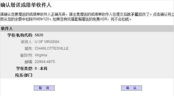 在下一页面确认成绩单收件人信息,并点击“确认”后成绩增送就完成了。