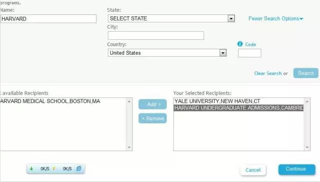 将你选择的学校添加进Your Selected Recipients列表中,可以同时添加多所学校